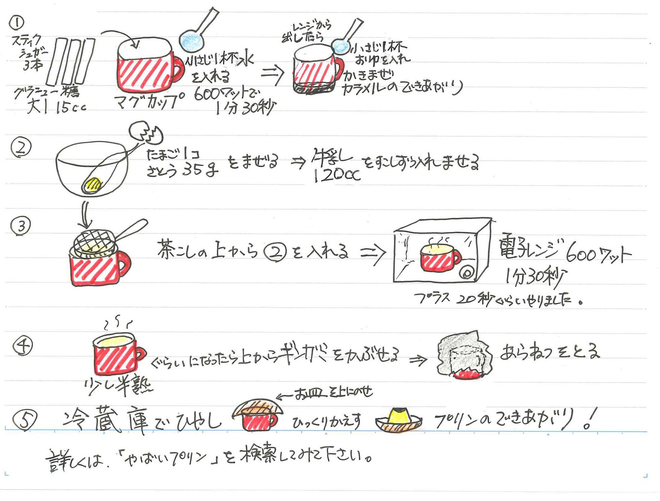 今、情報は携帯電話のグーグルで調べれば何でも教えてくれます。ついついユーチューブを見入ったりしてしまいます。そんな中、簡単にできるお菓子はないかな~と見ていると「やばいプリン~電子レンジだけでできるプリン!!~」が目に留まり、実践してみることにしました。