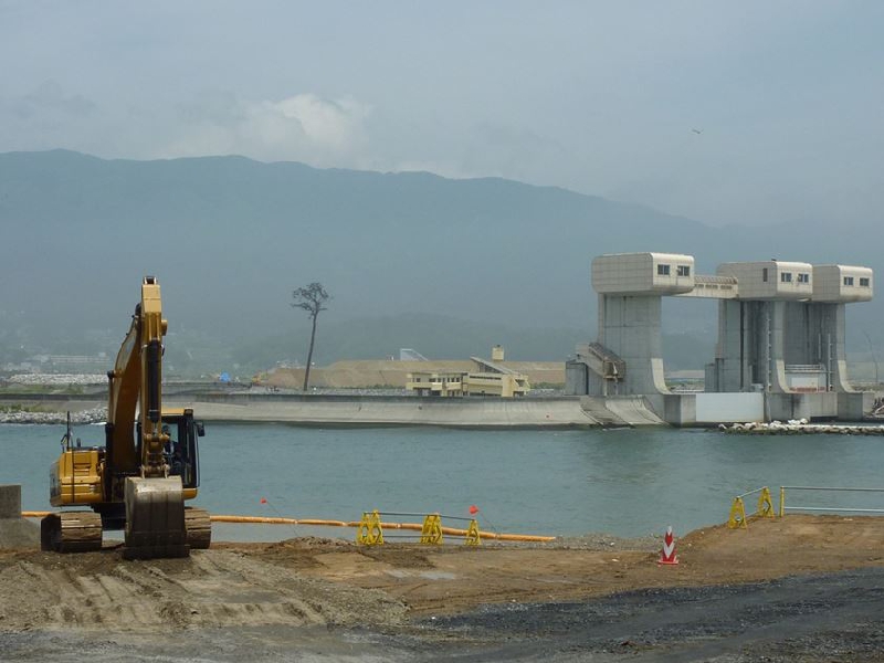⑨陸前高田の奇跡の一本松、気仙川河口の復旧工事の様子。