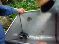 奥多摩川のアユ釣りも6月23日に解禁されました。が、放流が2週間前であったことなどから川全体にアユが行き届かず、ほとんどの箇所で不漁が続いていました。今朝は当初の計画通り、第二回目の放流が沿川で行われ、その手伝いに行ってまいりました。成魚放流の為、数量が限られているので、ホースで一気に流すのではなく、バケツに移して、ひとの手でこまめに分散放流を行いました。解禁前に放流したものと混ざって魚の分散とアユ本来の餌場を巡る闘争心が戻ってきてくれればと願っています。今後の課題として、稚魚放流と成魚放流のバランス、放流の時期、そして、多摩川を遡上する江戸前アユの汲み上げ放流などがあげられています。