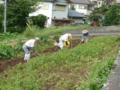 上に記した文はこの4月に後援会便りに掲載したものの一部です。この治助芋の収穫が本日行われました。男爵などに比べて収穫時期が、1ヶ月ほど遅いのでしょうか、もっとも種の植え付けも遅かったこともあるでしょうか。朝から涼しい風が時折吹いていましたが、収穫にあたったシルバー人材センターの職員と会員の皆様は汗だくの作業です。約30坪の耕作地に250㎏を超える治助芋が収穫されました。ことのほか大きなものも混じっています。200グラム以上のものも数多く見受けましたが、治助芋はMサイズの小ぶりのものが良いのだそうです。当面は町内で消費するそうですが、商品化され特産物として流通できるようになる日を心待ちしています。
