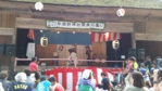 昭和56年の4月29日、当時の天皇誕生日にこの地に引っ越してきました。引っ越し作業で古里の駅から道を上がっていくと祭りの幟が風になびいていました。その日も今日と同じ快晴の祭り日和でした。あれから34年経ちましたが、出店などは少なくなったものの各グループの協力での模擬店、演芸大会や子供みこし、老人会の協力での餅つきなど趣向を凝らした熊野神社のお祭りが毎年開催されています。この数年は保育園も園児や先生方が参加をしています。神社の神楽殿に上がり、演技を披露する子どもたちは、保育園での姿とはまた違ったものを感じました。神事・直会から最後のカラオケ大会まで丸一日、アルコールも手伝い心地よい眠りにつきました。