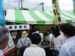 隣村の丹波山村はシカ肉のソーセージを挟んだ「丹波鹿ドック」小菅村はヤマメのから揚げ、私の出身地の御岳・青梅市からは「御嶽汁」そして現在住んでいる奥多摩町からは「わさび丸ごと根っ辛うどん」でした。すべて試食しましたが戸外で食べる美味しさを孫と楽しみました。島嶼部からも島の焼酎が出品され、帰りには特徴のあったブースのお土産とともに買い求めました。